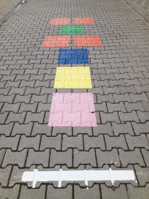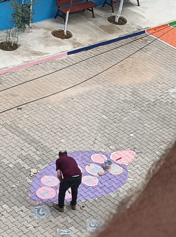 17- Okul bahçesinde bulunan kaldırım taşları boyanarak renklendirildi.