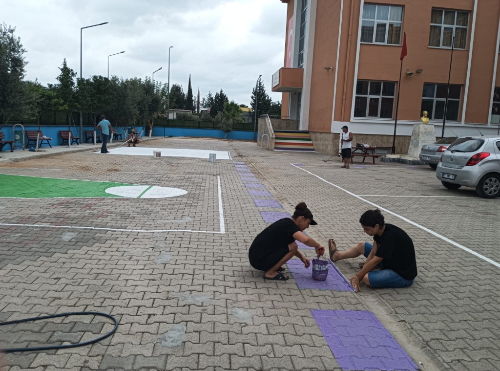 18- Okul bahçesinde yer alan basketbol sahası boyandı.