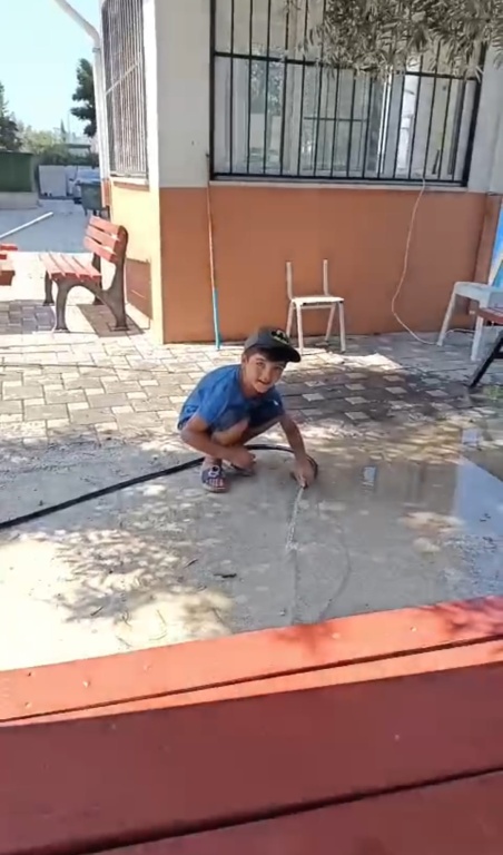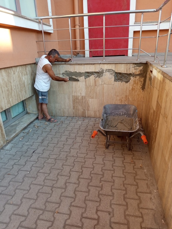 16- Okul bahçesindeki muslukların olduğu bölüme ait mermerlerin bakım ve onarımı yapıldı.