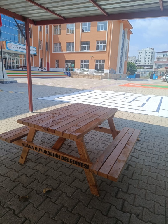 1- Okul bahçesindeki masa ve bankların tamiri yapılarak bu bank ve masalara astar ve boya yapıldı, okul bahçesine belirli aralıklarla sabitlendi.
